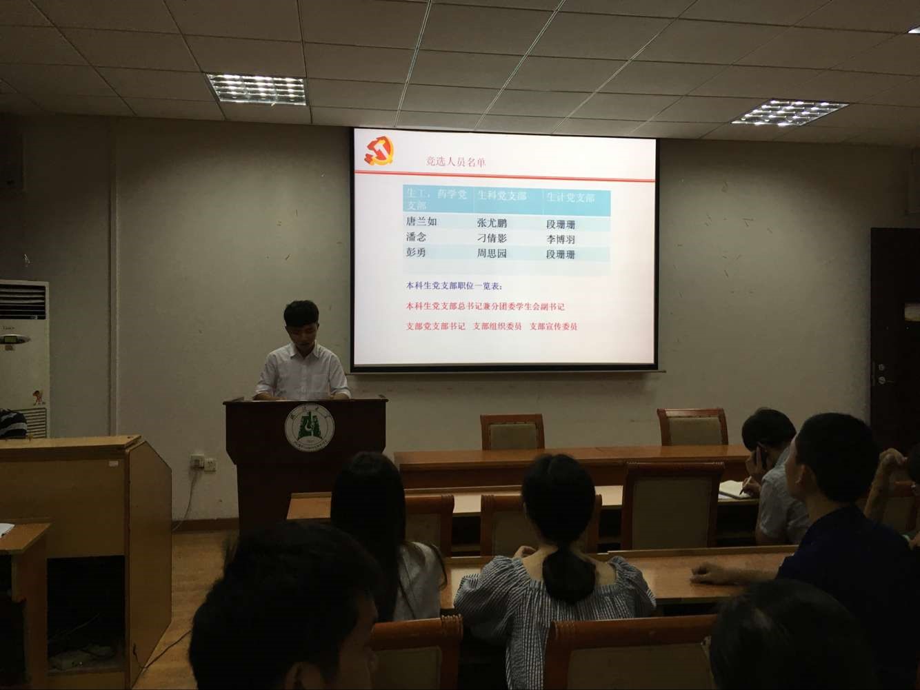 2016年9月9日晚,生科院学生党支部换届大会在生科院二号报告厅顺利举行,莅临本次换届大会的老师有院党委副书记许良发老师,院团委书记马菲老师,会议由2015届生工及药学党支部书记马恒主持。