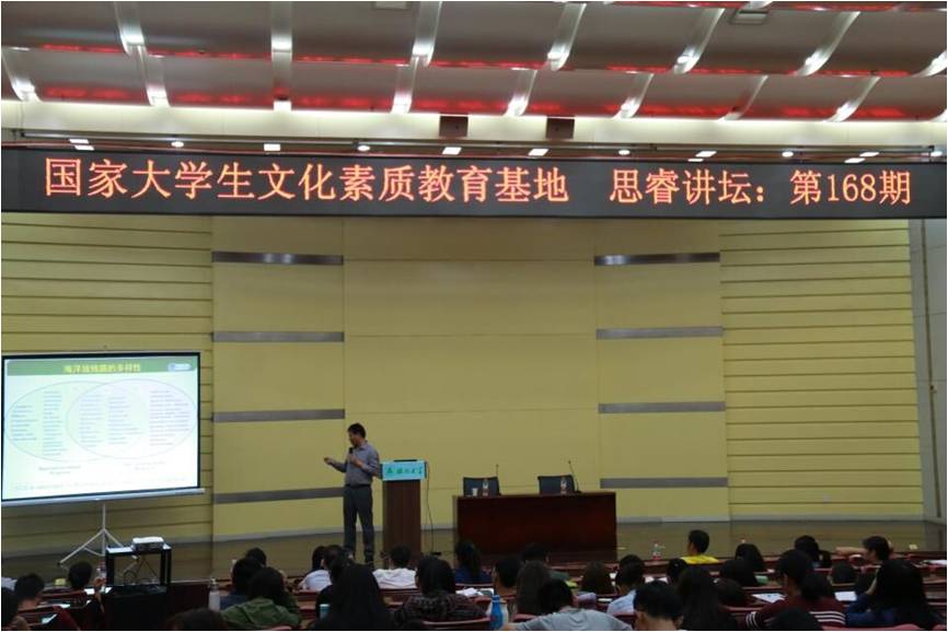 10月20日上午11时,中国科学院南海海洋研究所张长生研究员应邀做客我校思睿讲坛第168期,为全校师生作了题为《海洋放线菌资源、代谢与生物合成》的学术报告。