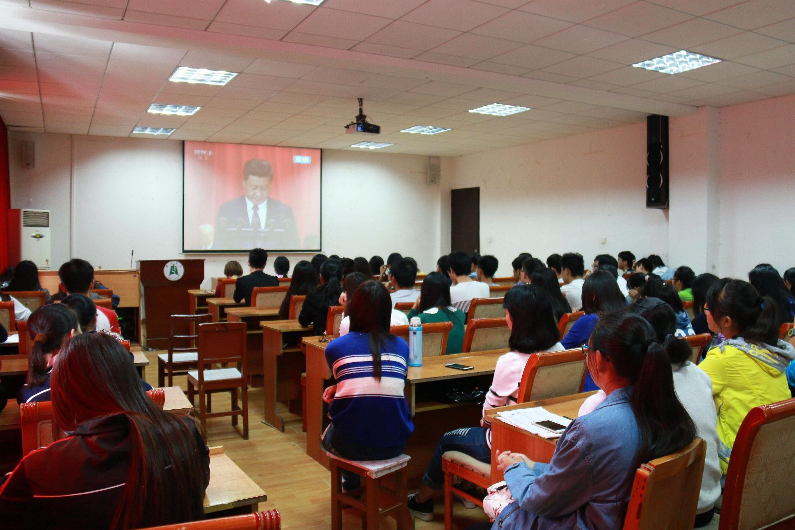在中国工农红军长征胜利八十周年纪之际,2016年10月21日上午,英国365上市集团组织大一大二各班的学生在生科院二楼报告厅观看直播---中央特别节目:长征--信念的力量,一起缅怀先烈,学习长征精神。