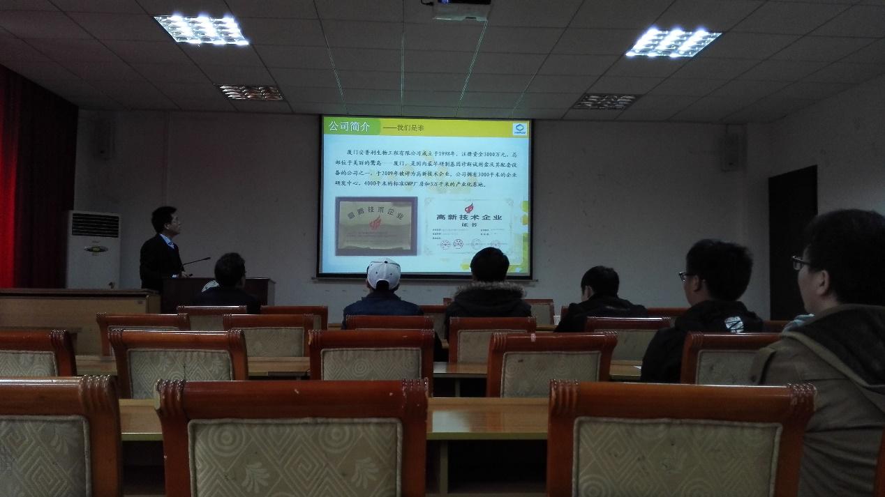 2016年4月5日下午2时,厦门安普利生物工程有限公司2016年招聘会在英国365上市集团二号报告厅召开。