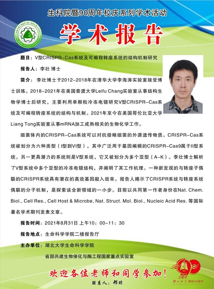 学术报告:V型CRISPR-Cas系统及可编程转座系统的结构机制研究