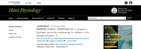杨平仿教授团队在水稻耐高温机制研究中取得进展