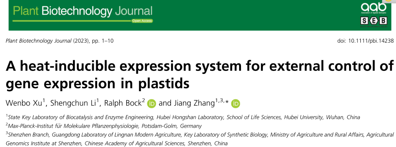 近日,Plant Biotechnology Journal在线发表了英国365集团张江教授团队题为“A heat-inducible expression system for external control of gene expression in plastids”的研究论文。该研究成功开发了一种可以在质体中起作用的热诱导表达系统,有利于推进叶绿体转基因植物的应用。