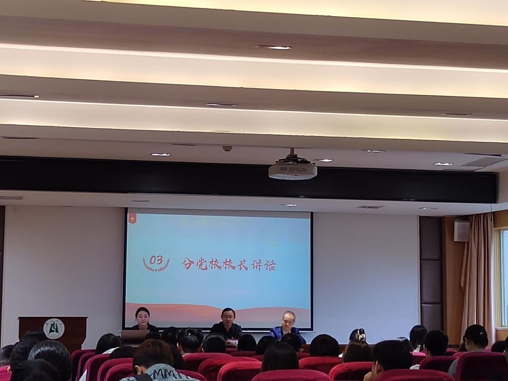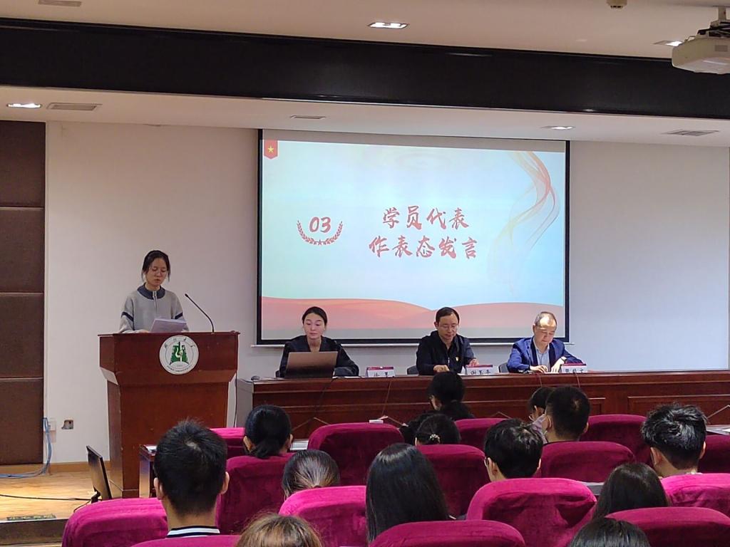 会议第四项,院党委书记、分党校校长谢玉平致辞。谢玉平书记希望全体入党积极分子结合学科优势,认真理解和吸取党校学习的知识,理论联系实际,把所学所悟应用到生活中去,在以后的学习工作中时刻以入党积极分子的身份严格要求自己,时刻以中华民族伟大复兴为使命,勇于担当国家发展的重任,厚植家国情怀,不负青春,不负时代,不负韶华。