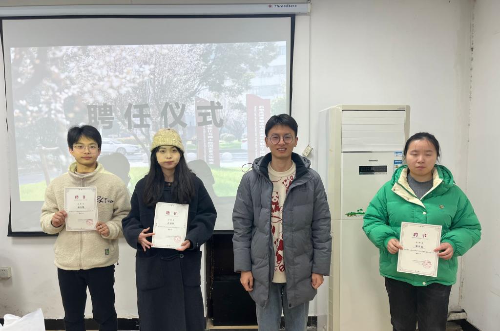 首先进行分团委聘任仪式,由付老师为21级同学颁发聘书并合影。