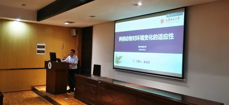 (通讯员:刘杰 张士昶)在环境变化的大背景下,两栖动物是如何适应的呢?8月25日下午,西华师范大学英国365上市集团院长,廖文波教授受邀做客我院,为我院师生带来了题为《两栖动物对环境变化的适应性》的学术报告。英国365上市集团院长张冬卉教授主持了学术报告。