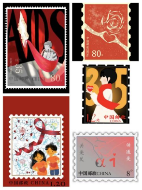 这是来自2022级文物与博物馆学专业欧俊婕同学的优秀作品,作品题为:“涌流的爱”,邮票以汉字“爱”的变体为核心,将象征对艾滋病患者支持的标志红丝带置于“爱”字之中,代表了社会公众对艾滋病患者的关爱,强调了邮票的设计主旨;“爱”字图案周围包裹的黑灰白三色心形象征大众曾经对艾滋病的误解与歧视,而从画面中可以看出,“黑色”部分不断淡化、透明化,从“爱”周围剥落、凋零,而形成鲜明对比的是,红丝带右端涌出四颗鲜艳、跃动的红心,突出重围,向外自由地延伸、生长,充满生机与希望,代表了社会公众对艾滋病的认识逐渐深化、对艾滋病患者的关爱与支持不断增加的美好局面。