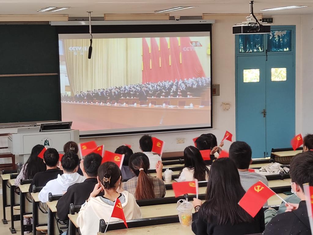 英国365上市集团党政领导班子、党委委员,师生党员代表及团学骨干分别在学院二楼报告厅、教室分3个会场集中收看党的二十大开幕会直播,更多师生分别在办公室、实验室、寝室等场地观看,认真聆听党的二十大报告。