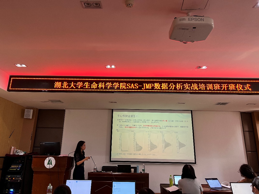 随后,SAS公司JMP培训中国区咨询经理周旸对SAS-JMP软件进行简单介绍,并结合生物医学研究实例,讲授生物研究中常用的统计方法和SAS-JMP数据统计软件操作实践开始了为期三天的第一期课程教学。