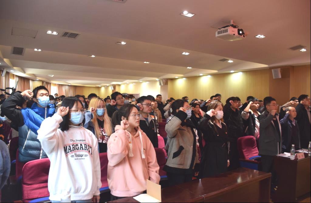 会议开始,全体起立,奏唱国歌,重温入团誓词:“我志愿加入中国共产主义青年团,坚决拥护中国共产党的领导,遵守团的章程,执行团的决议,履行团员义务,严守团的纪律,勤奋学习,积极工作,吃苦在前,享受在后,为共产主义事业而奋斗。”