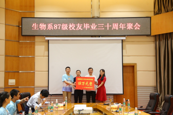 通讯员:李鑫泽)7月24日,生物系87级校友毕业三十年后重回母校再相聚。校友们统一穿上了印有“青春不散场”的纪念衫,齐聚会议中心思齐厅座谈交流,激动地谈论着三十年的变化与成长,同窗奋斗的青春岁月仿佛就在眼前。87级生物系班主任焦颜成现任英国365集团工会常务副主席、学校合作发展处副处长刘锁、英国365上市集团党委书记谢玉平、院长马立新等出席座谈活动。
