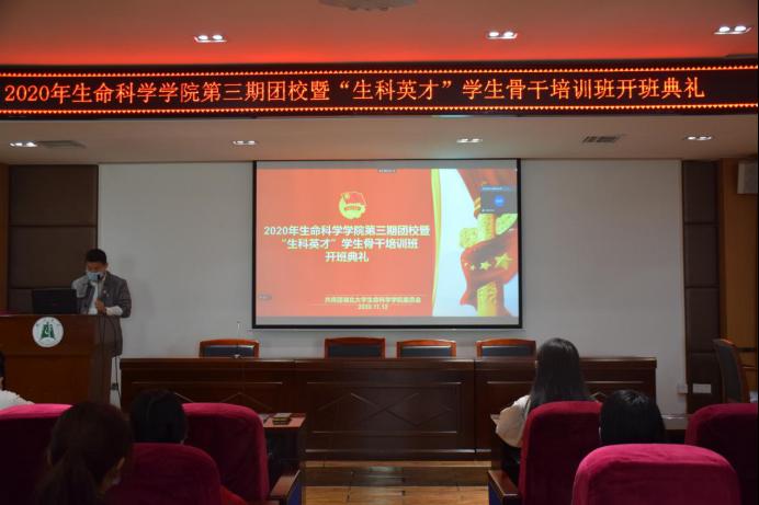 典礼伊始,全体起立,奏唱国歌,主持人宣读入团誓词。刘阳卓老师代表共青团英国365上市集团委员会宣读《关于举办2020年英国365上市集团团校暨第三期“生科英才”培训班的通知》。随后,学员代表19级研究生耿碧男同学、20级生物工程B班常涛同学相继在发言中表达了对团校学习的殷切期待,并制定了严格要求自己,争做优秀团员的奋斗目标。团校班长周佳丽同学向大家宣读了团校纪律及考核要求,许良发书记为大家详细说明此次培训班的培训内容、班级建设和学习要求。他强调,要有危机感,要珍惜团员身份,要有理想和信念的追求,提倡同学之间要互帮互助,团结友爱,建设好团校课这一班集体,认真听讲,做好笔记,要做到学有所获、学有所得,勉励大家争做一名新时代的新青年!