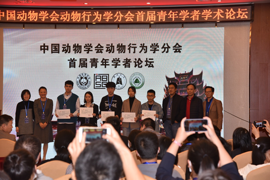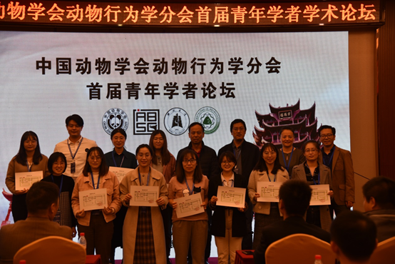 受学会邀请,中国科学院昆明动物研究所施鹏研究员、中国科学院动物研究所王宪辉研究员、武汉大学卢欣教授以及我院张士昶副教授,分别作了大会报告。本次大会学生学者们共做了47个会议口头报告和29份墙报展示。研究对象涉及从节肢动物到哺乳动物的各个类群。大会始终在热情洋溢、朝气蓬勃的气氛中进行,为表彰青年学子们研究动物行为学的热忱,大会从研究生和博士后参会者中共评选出10个优秀口头报告奖和5个优秀壁报奖。我院硕士研究生马妮娜获优秀壁报奖,并代表获奖学生做了发言。此次论坛为相关学科的专家学者提供了一个极好的交流研讨平台,对于提高我国动物行为学研究水平、促进动物行为学研究具有重要意义,同时也对我校动物学研究水平的提高具有极大的促进作用。