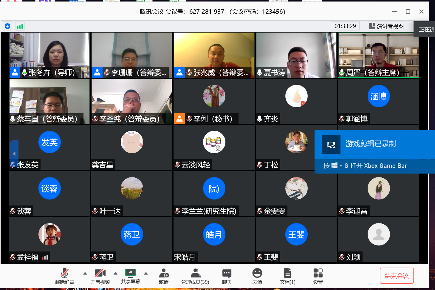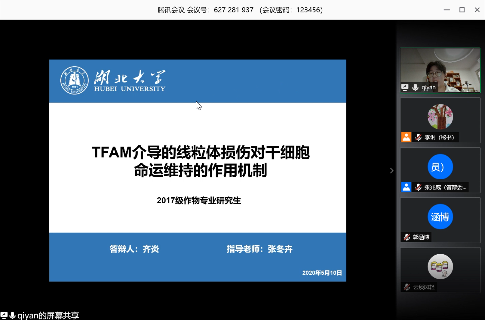 2位研究生的答辩资格、答辩委员会组成、答辩公告发布、答辩进行程序等均符合学校规定,答辩秘书均按照学校要求对视频答辩过程进行了录像、视频截图,组织答辩委员使用微信小程序“腾讯投票”对答辩人进行了匿名表决。经过严谨的安排和师生的密切配合,本次答辩圆满完成。
