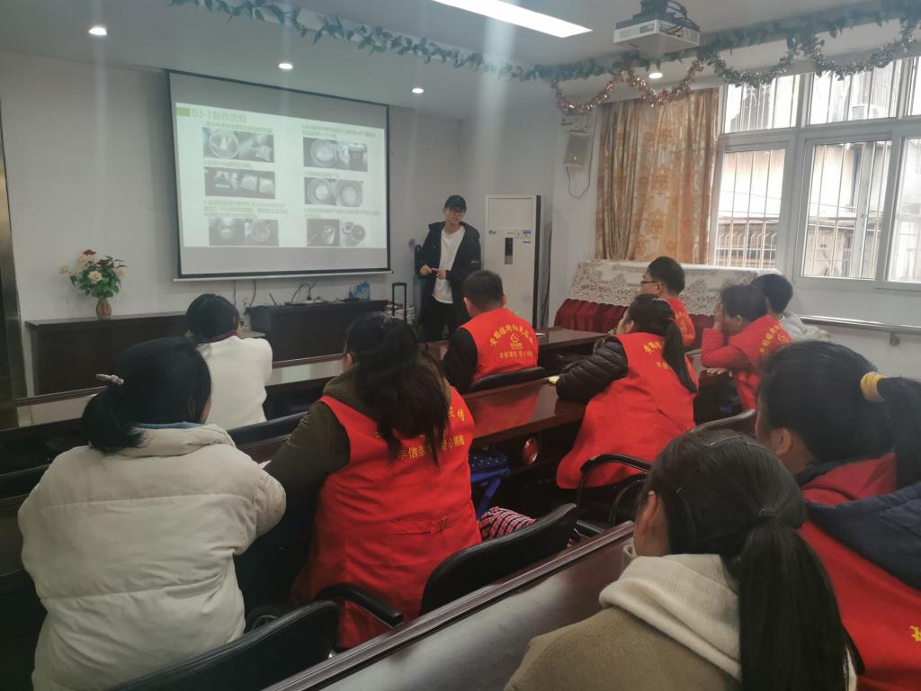 到达阳光家园之后,活动负责人叶双成为学员们介绍了自然界中比较常见的微生物。随后,活动负责人冯东升向学员们讲解了酸奶的制作方法,课堂气氛非常活跃。接着,叶双成拿出了上次活动还未完成的纸菠萝,教学员们如何拼插菠萝。学员们都认真投入到课堂之中。在活动结束之前,学员们表达了对志愿者的感谢,他们真诚的话语感动了志愿者,活动负责人也表达了自己在活动之中的收获和对学员们的不舍。最后,大家通过视频回忆了本学期活动的点点滴滴,志愿者和学员一起合影,结束了本学期最后一次的活动。