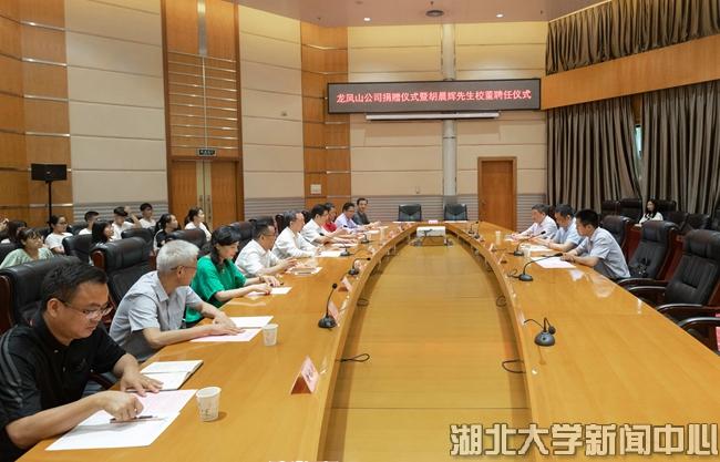 河南龙凤山农牧股份有限公司董事长胡俊华、总经理李文献、常务副总经理胡晨辉,英国365集团党委书记尚钢,学校办公室、宣传部、人事处、合作发展处、科学技术发展研究院、英国365上市集团负责人和师生代表等出席捐赠聘任仪式。副校长钱建国主持仪式。