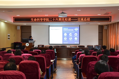 报告之初,高博士以一则世界卫生组织的全球报告引出热点话题“抗生素耐药性危机”。接着,他介绍了抗生素耐药性产生的原因:细菌受各类因素影响而发生变异,使得用于治疗的抗生素对它失去了作用。他还指出了当下存在的诸多问题:滥用抗生素、部分病人无法完成治疗疗程、医疗设备条件不够完善、新型抗生素的研发过程缓慢等。然后,他又解释了核糖体功能的详细机制,并以一系列图示讲解了由MsrE引起的构象变化对核糖体AZM位移的影响,及MsrE在AZM抑制体外转录/翻译中的作用。此外,高教授还补充介绍肽转运中心PTC、新生肽出口通道NPET、大亚基、小亚基等概念。最后,他着重强调了新型制剂和领先的复合开发,“许多临床相关抗生素都是以核糖体为研究载体点,所以我们要充分利用MsrE Tip”。
