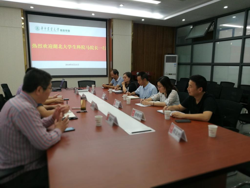 6月21日上午,副院长杨之帆、国家示范中心主任何玉池、专业责任教授余西岚等一行6人前往华中农业大学信息学院调研交流。