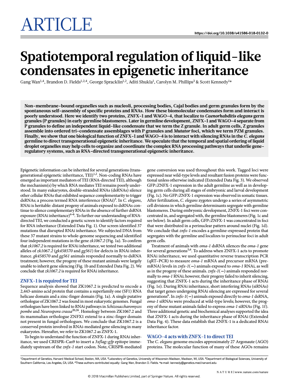 日前,英国365上市集团2005级硕士研究生校友万刚博士在Nature杂志发表题为“Spatiotemporal regulation of liquid-like condensates in epigenetic inheritance”的长篇研究性文章(Article)。Nature是世界上最早的国际性科技期刊,自从1869年创刊以来,始终如一地报道和评论全球科技领域里最重要的突破,影响因子为40.137