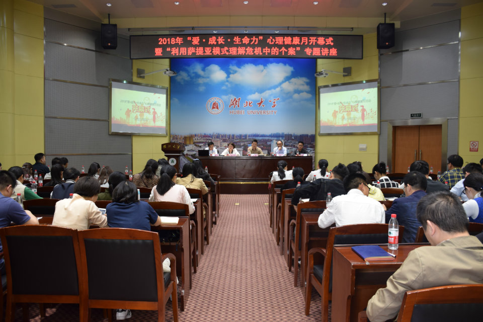 410日下午,由学校心理健康教育中心主办,我院承办的2018年“爱·成长·生命力”心理健康月活动开幕式在会议中心思诚厅举行。校党委副书记侯勇,中南财经政法大学心理健康教育中心副主任杨子云,学工部、研工部、校团委负责人,各学院副书记、负责心理健康工作的辅导员,部分学院班主任参加了开幕式。