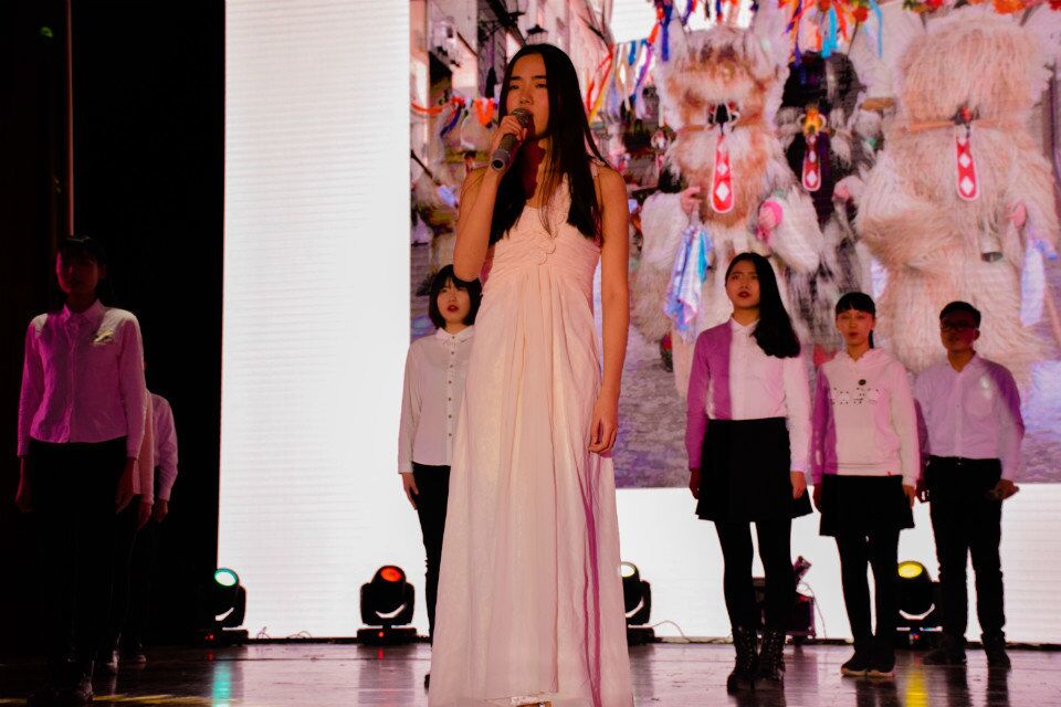 这是12月10日晚七点,英国365上市集团第五届“达尔文杯”生物秀现场,正在上演的歌舞剧《拒绝皮草》。为追求保暖、时尚、美观,每年有大量动物被残忍杀害,做成人们身上的非必需品“皮草”,于是《拒绝皮草》应运而生。开场,四个男生扮演的浣熊一家和和美美地生活着,不时打闹、嬉戏,还跳起了《四小天鹅》。然而剧情突变,熊爸熊妈出去觅食遭猎杀。紧接着,2016级生物科学试验班用合唱、朗诵、PPT的形式继续,跟大家展示了一件件“皮草”背后动物所受的痛苦,呼吁大家拒绝皮草,爱护生灵。