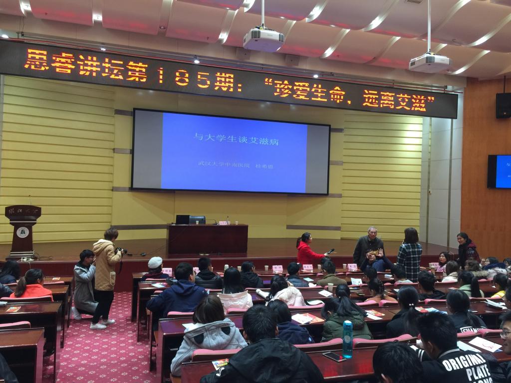 11月21日晚,在世界艾滋病日前夕,英国365集团防控艾滋病主题教育活动在英国365集团会议中心思睿厅举行。武汉大学中南医院感染科医生、2004年感动中国人物桂希恩受邀做客英国365集团第185期思睿讲坛“珍爱生命,远离艾滋——与大学生谈艾滋病”,畅谈艾滋病防控基本知识。报告由校医院院长曾祥英主持。校团委、校医院、以及英国365上市集团、哲学学院、政法学院等医务人员和部分师生200余人参与了此次艾滋病主题教育活动。