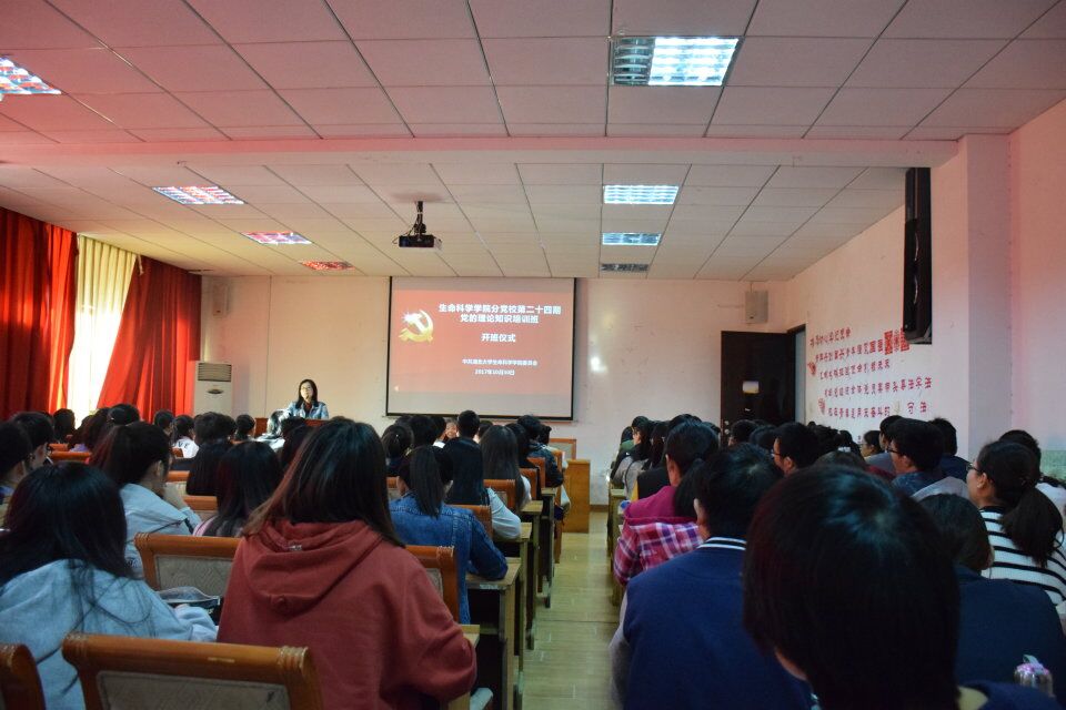 开班仪式共5项议程。全体奏唱国歌、分党校班长刘金诚宣读《党的理论知识培训班管理规定》、新生代表发言、许良发发言及吴文华总结讲话。在谈到党的十九大报告内容时,2017级生物科学专业的孟雨萱说:“保持党的纯洁性就是要品质优秀、能力高强、行为规范。”许良发紧接着跟大家分享了“端正态度,遵章守纪”、“端正动机,克难奋进”、“互帮互助,学有所成”三点感想,还呼吁122名分党校学员“成为合格的马克思主义青年,为大生科代言。”最后,吴文华表示大家能从院内近1300名本科生中拿到这次分党校“入学通知书”很不易,他说:“你们要权衡好日常学习与党校学习之间的关系,做好与任课老师、实验员老师的沟通交流,还要在思想上和行动上对自己进行双重考核。”