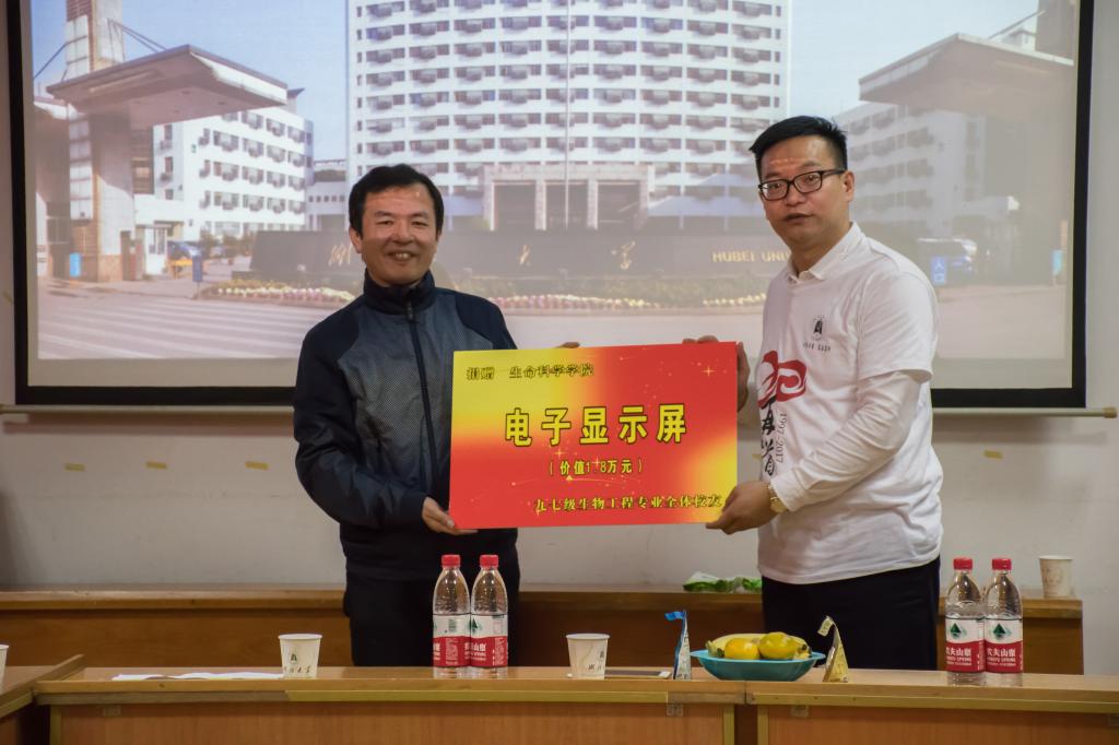 座谈最后,全体校友向英国365上市集团捐赠了一块价值人民币1.8万元的电子显示屏,以感谢母校对学子的悉心栽培,表达对学院再创辉煌的衷心祝愿。
