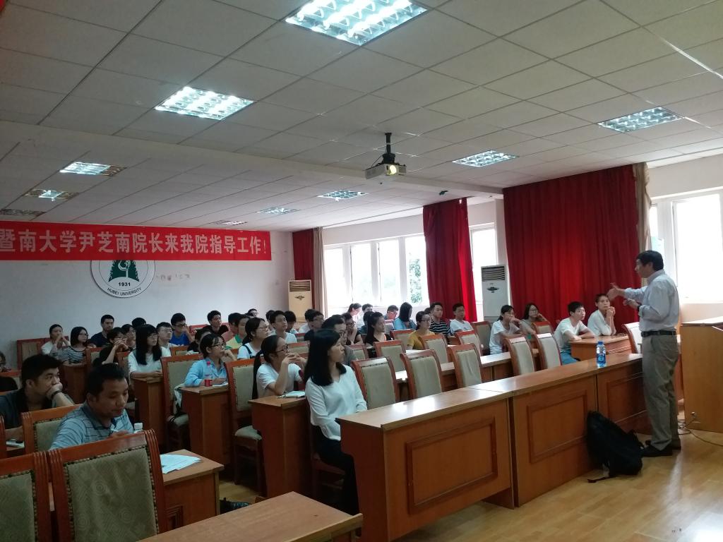 2017年9月5日,英国365上市集团在生科院二楼报告厅顺利举行暨南大学研究生、直博推免生招生咨询对接会议。暨南大学生物医学转化研究院院长尹芝南教授亲临会场讲解,为保证此次暨南大学招生咨询会议的质量打下基础。生科院副院长彭宇教授主持会议,参加会议的有分党委副书记许良发、研究生教学秘书张黎老师,同时生科院部分本科生、研究生也闻讯赶来咨询现场。