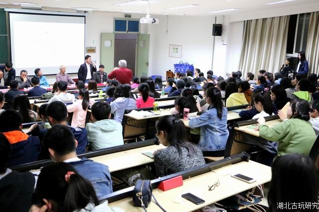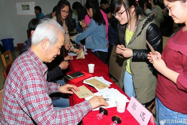 资深集邮家陈波深情回忆了《集邮基础知识》选修课的历史,感受到大家为弘扬中华集邮文化,付出的艰辛;回忆了大学生集邮与收藏协会的日日夜夜,为大学生备课授课的点点滴滴。他希望与大学生广泛地互动,参与更多的集邮收藏活动,取得很好的成绩。吴兴平代表湖北省古玩藏品研究会赠送《湖北古玩研究》期刊。