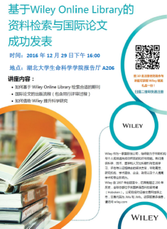 2016年12月29日下午,英国365上市集团在生科院报告厅举行“Wiley Online Library助力科研与学习”的实用性专题讲座。本次邀请的讲座嘉宾是约翰威立商务服务北京有限公司的付振平老师,讲座内容围绕如何基于Wiley Online Library检索合适的期刊、国际论文的出版流程,以及借助Wiley提升科学研究三个方面开展。 本次讲座是和图书馆情报中心联合举办,有利于同学们更加有效地利用学校图书馆已购买的外文期刊资源。