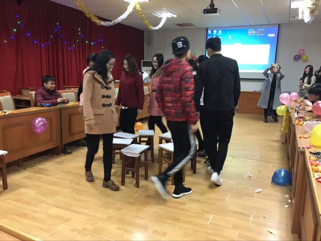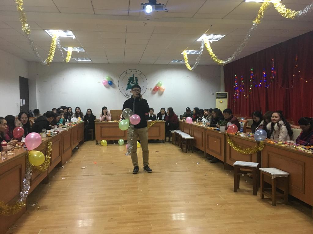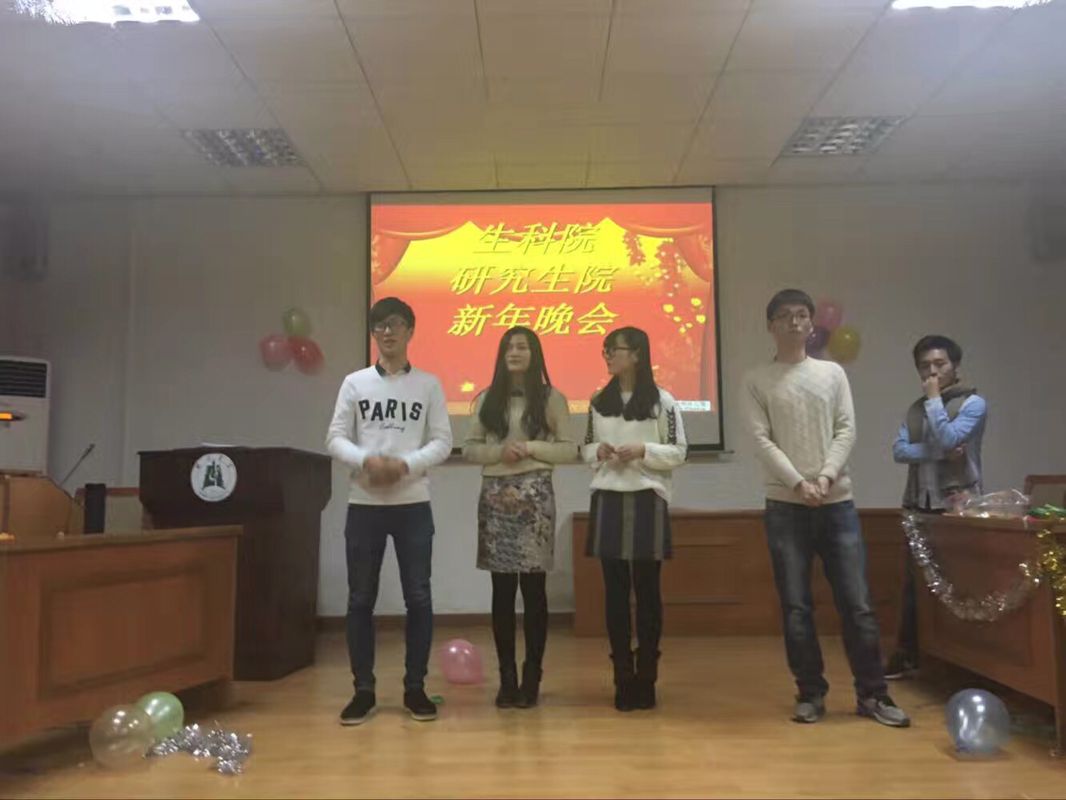 此次晚会,主要是让研究生们从实验室走出来,总结2016,展望2017!此次晚会主要由学生节目表演、丰富多样的游戏以及学生拍摄的新年祝福小视频组成另外,为了烘托新年氛围,我们还为表演者们提供了零食大礼包以及参与游戏的鼓励奖。在我们的抢凳子游戏中,班主任张黎老师也参与其中,拉近了与同学们的距离。