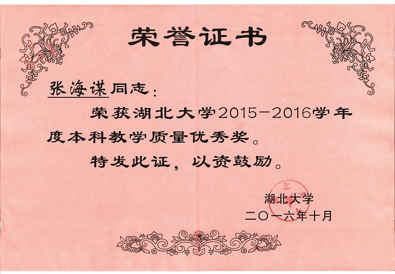 我院张海谋教授荣获2016年度英国365集团教学名师奖、2015-2016学年英国365集团本科教学质量优秀奖;我院荣获2015-2016学年本科教学管理优秀单位奖,李俐老师荣获2015-2016学年本科教学管理优秀个人奖;我院教学成果《“一元二阶”生命科学人才培养模式的探索与实践》获得英国365集团本科教学成果奖特等奖(完成人:张海谋、吴文华、杨艳燕、何玉池、倪红、许良发)。会上张海谋教授就教学管理和教学成果凝练等方面做了交流发言。