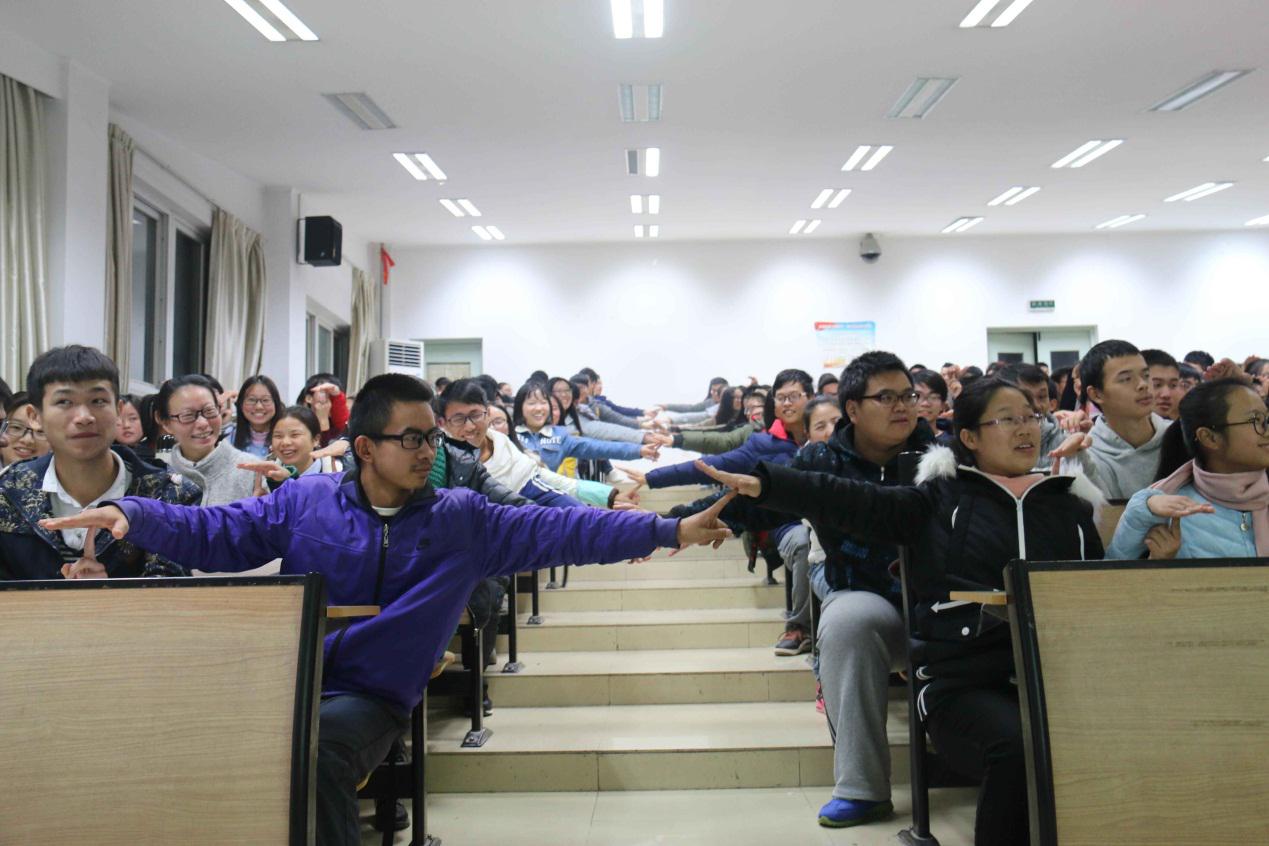 自诩“老司机”,书记果然与众不同,还未开讲反而带全体同学玩起了游戏。现场气氛瞬间沸腾。左右同学的互动,现场欢笑声连连,书记由此进入并慢慢深入本次主题,首先指出大学生男女