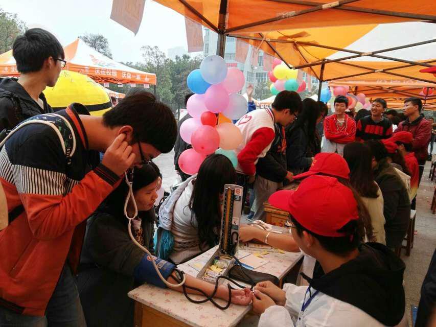 活动前,各院为布置场地做足准备,为活动完满结束打下了坚实基础。通过摆点分发宣传单的前期宣传为此次活动积攒不少人气,使得当天活动细雨蒙蒙却仍有不少人前来参与到活动当中。活动伊始,各院为传播健康知识和播洒爱心使出浑身解数,其中不少学院选择用知识问答的形式来普及学生对于健康方面的认知,例如生科院“健康一站”