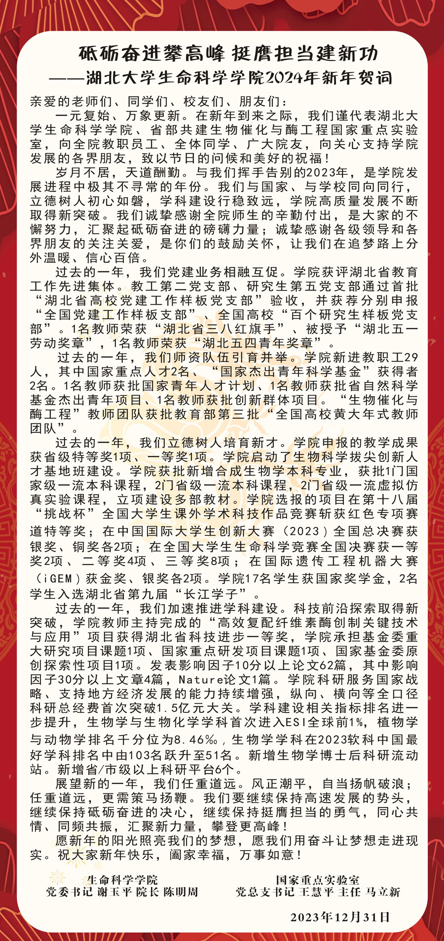 砥砺奋进攀高峰 挺膺担当建新功 ——2024年新年贺词