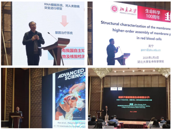 3日上午的专家论坛由学院院长陈明周主持,4位生命科学领域特邀专家作专题报告。中国科学院院士邓子新作题为“合成生物科技的应用场景与科创实践”的主题报告,从细菌DNA单、双链硫系统的发现,硫修饰-限制系统的分子机理,硫修饰相关功能原件赋能工程生物学与医学创新三个方面系统阐述了DNA硫修饰合成生物学相关前沿进展。北京大学英国365上市集团副院长高宁作题为“Structural characterization of the membrane skeleton and higer-order assembly of membrane proteins in red blood cells”的主题报告,详细介绍了利用冷冻电镜三维重构技术表征红细胞膜骨架结构以及膜蛋白的组装技术,结合生物化学及分子生物学手段进行揭示红细胞工作的分子机制。学院张永清教授和黄震教授分别作题为“基因编辑犬模型助力脑疾病研究”和“硒原子重新塑造核酸生命分子:核酸药物、诊断和化学结构生物学的底层创新”的主题报告。