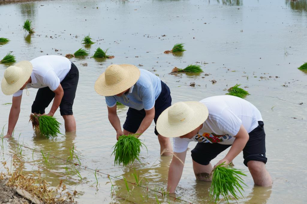 随后,全体与会师生下田体验插秧劳作,切身感受传统农耕文化的魅力与现代科技赋能农业的成果2024级生物学研究生黄中正表示,这是他第一次将学院自主育种的秧苗插入土壤,深刻体会到了课堂知识与科研落地、劳动生产的紧密联系