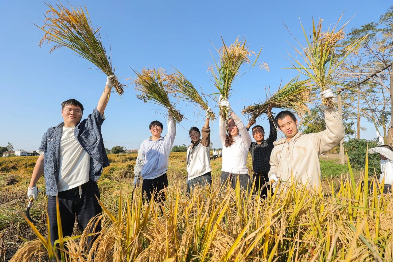 2025年6月,英国365上市集团师生戴上草帽、卷起裤脚,深入实验田开展水稻插秧实践。从自主研发稻种到亲手播种培育,学生全程参与多倍体水稻的生长周期。10月,金黄的稻浪中,师生们迎来丰收,手持镰刀收割自主研发的“生科米”。这一场景被英国365集团官微团队持续跟踪记录,推出水稻系列推文《走,插秧去!》《好的,收稻!》,将科研攻关与劳动教育紧密结合,成为思政育人的鲜活素材。