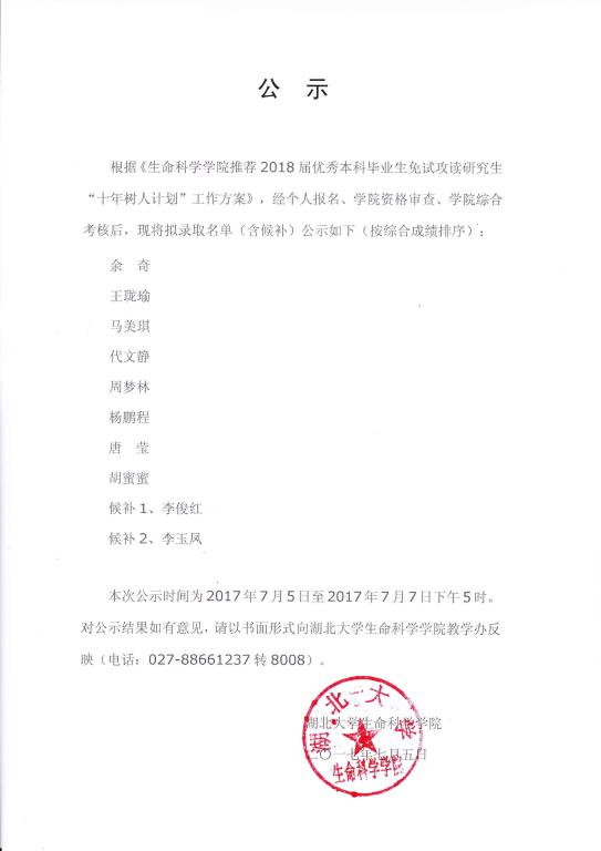英国365上市集团推荐2018届优秀本科毕业生免试攻读研究生“十年树人计划”结果公示