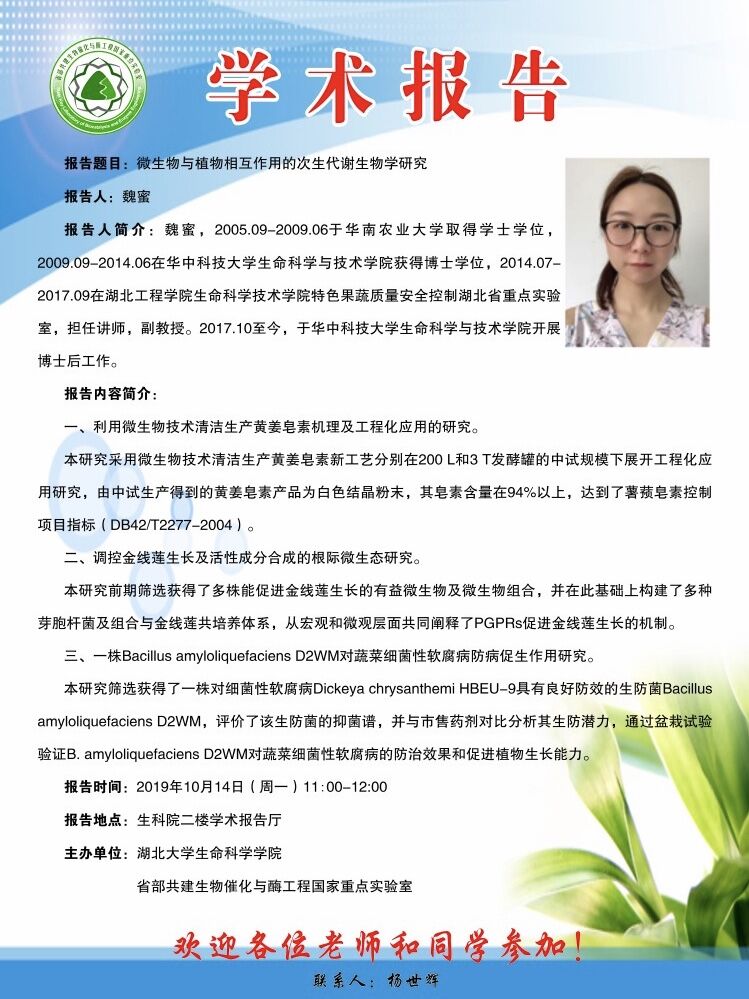 学术报告:微生物与植物相互作用的次生代谢生物学研究