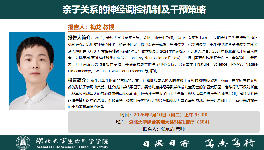 报告人 梅龙 时间 2026年2月10日(周二)上午 9:00