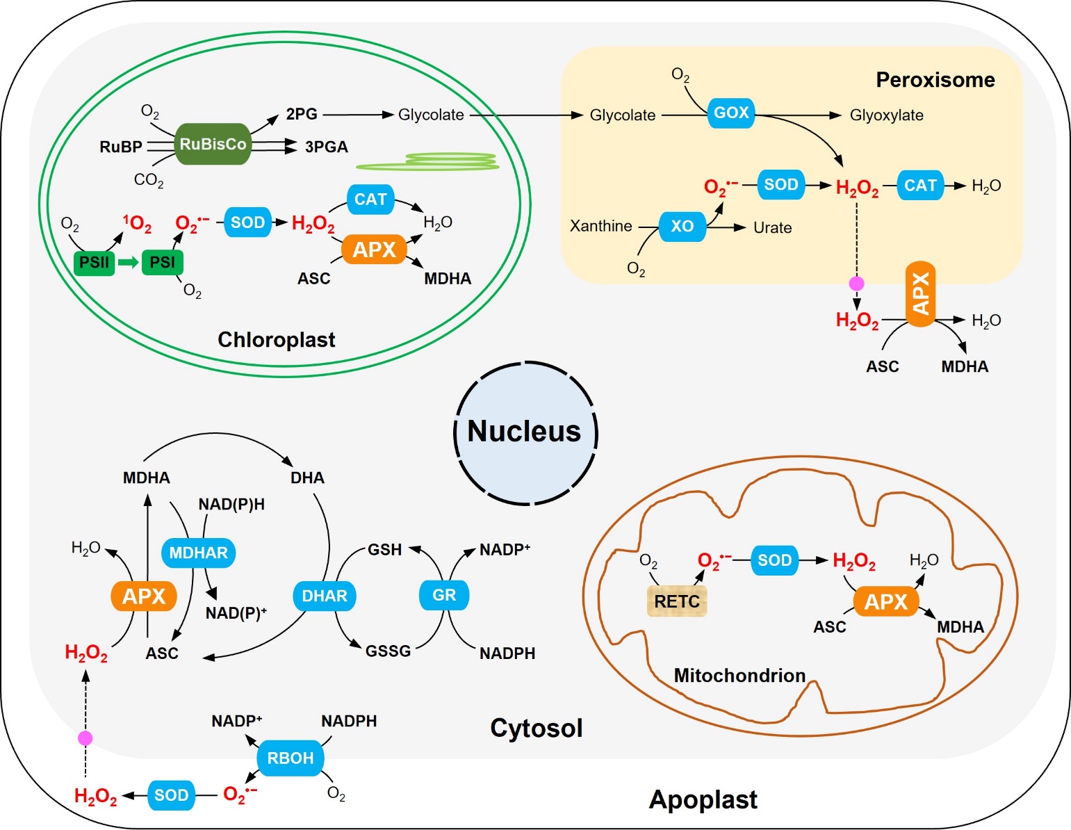 近日,英国365上市集团李圣纯团队在氧化还原领域顶级期刊Redox Biology杂志上发表了题为“Novel insight into functions of ascorbate peroxidase in higher plants: more than a simple antioxidant enzyme”的综述文章。该文总结了高等植物抗坏血酸过氧化物酶(APX)的最新研究进展。