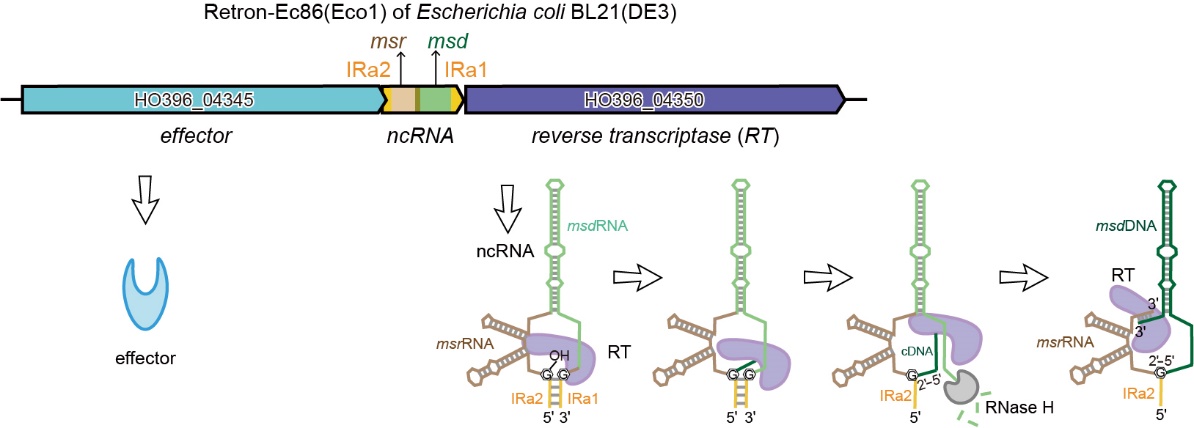 图1以 Retron-Ec86 为例的retron msDNA 合成过程示意图