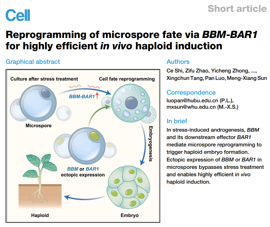 生科院罗盼副教授在植物小孢子单倍体育种领域研究成果在《Cell》发表