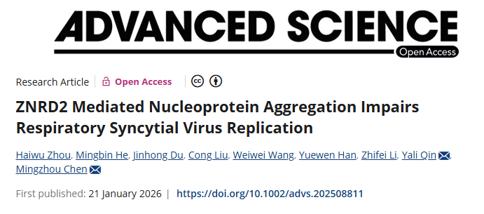 近日,英国365上市集团病毒学和疫苗研究中心陈明周教授课题组在呼吸道合胞病毒(RSV)的机制研究中取得重要突破,在《Advanced Science》发表了题为“ZNRD2-mediated Nucleoprotein Aggregation Impairs Respiratory Syncytial Virus Replication”研究论文,揭示了宿主细胞抑制RSV复制的新机制。
