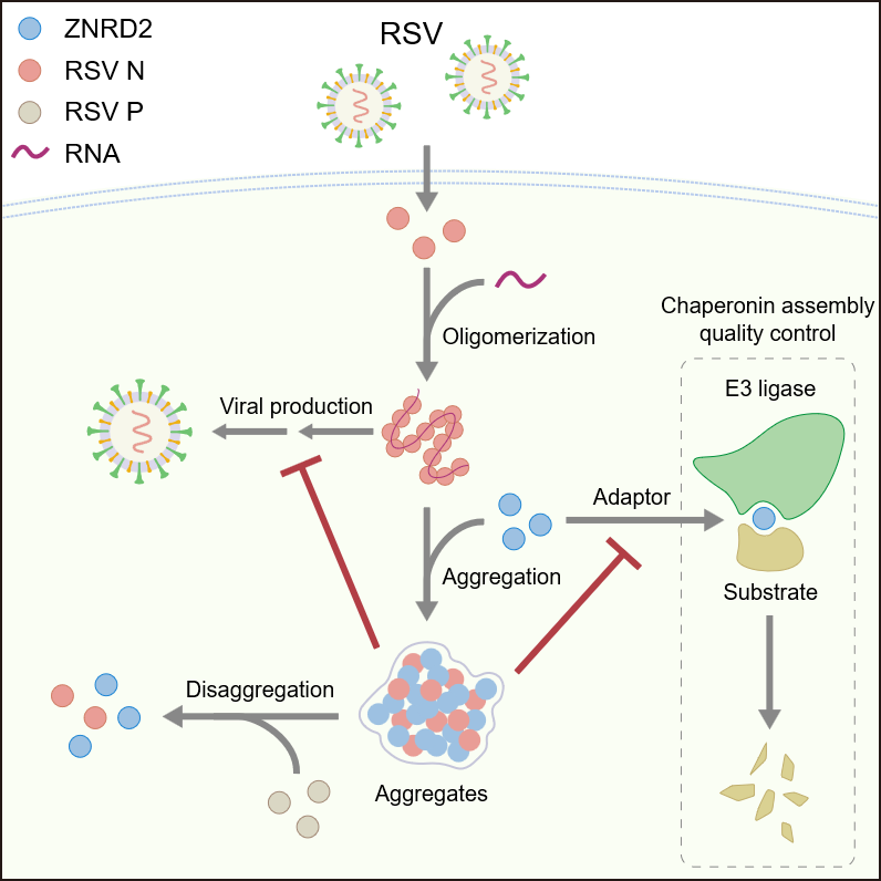 该研究成果不仅揭示了宿主与呼吸道合胞病毒之间一种新的互作机制,为理解细胞在抗病毒过程中如何维持自身稳态提供了新的理论视角,同时也为发展基于宿主-病毒互作界面的新型抗病毒治疗策略奠定了关键的理论基础。
