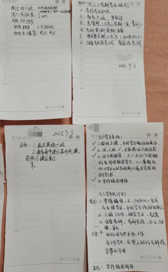 最后,进行本次班会第三项——写下自己的大三学年学习计划。在尹丹老师的指导下,同学们从专业课学习、实验室学习或学科竞赛及日常生活等方面为自己制定了可行的学年计划。部分同学表示将进入实验室学习、争取将理论知识应用到实验实践中去,同时补充理论课上未曾学到的知识。此外,已通过英语四、六级考试的同学表示将坚持英语学习,为研究生入学考试、出国深造等做好充分准备。
