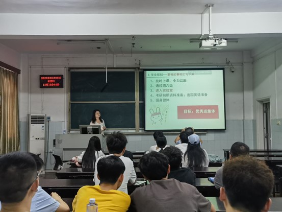 班会伊始,尹老师对大二学年班级活动风采、科研竞赛成果以及专业课学习情况等进行了简要总结并鼓励全体同学对大二学年的个人学习生活进行总结与反思,合理制定新学年学习计划,筑梦新起点,蓄力向未来。