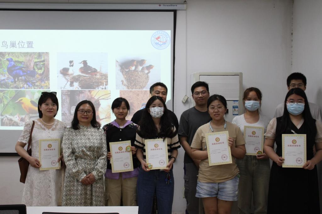 此次活动包含鸟类学野外研究介绍、野外鸟类观测基地科研工作现场直播、“鸟类育雏知多少”主题交流报告以及鸟类生态虚拟仿真实验体验四个部分,活动结束后对对科普活动中表现特别优秀的参观者颁发了科普实践证书。现场活动内容丰富多样,结合了实时直播交互与虚拟仿真技术,体验感强,现场与网络直播间吸引了不同专业、不同职业的数百人参加。在野外实时直播现场,参观者非常幸运见证了难得一见的“鸠占鹊巢”现象,直播摄像头拍摄到了噪鹃将自己幼鸟寄养在黑脸噪鹛鸟巢中。